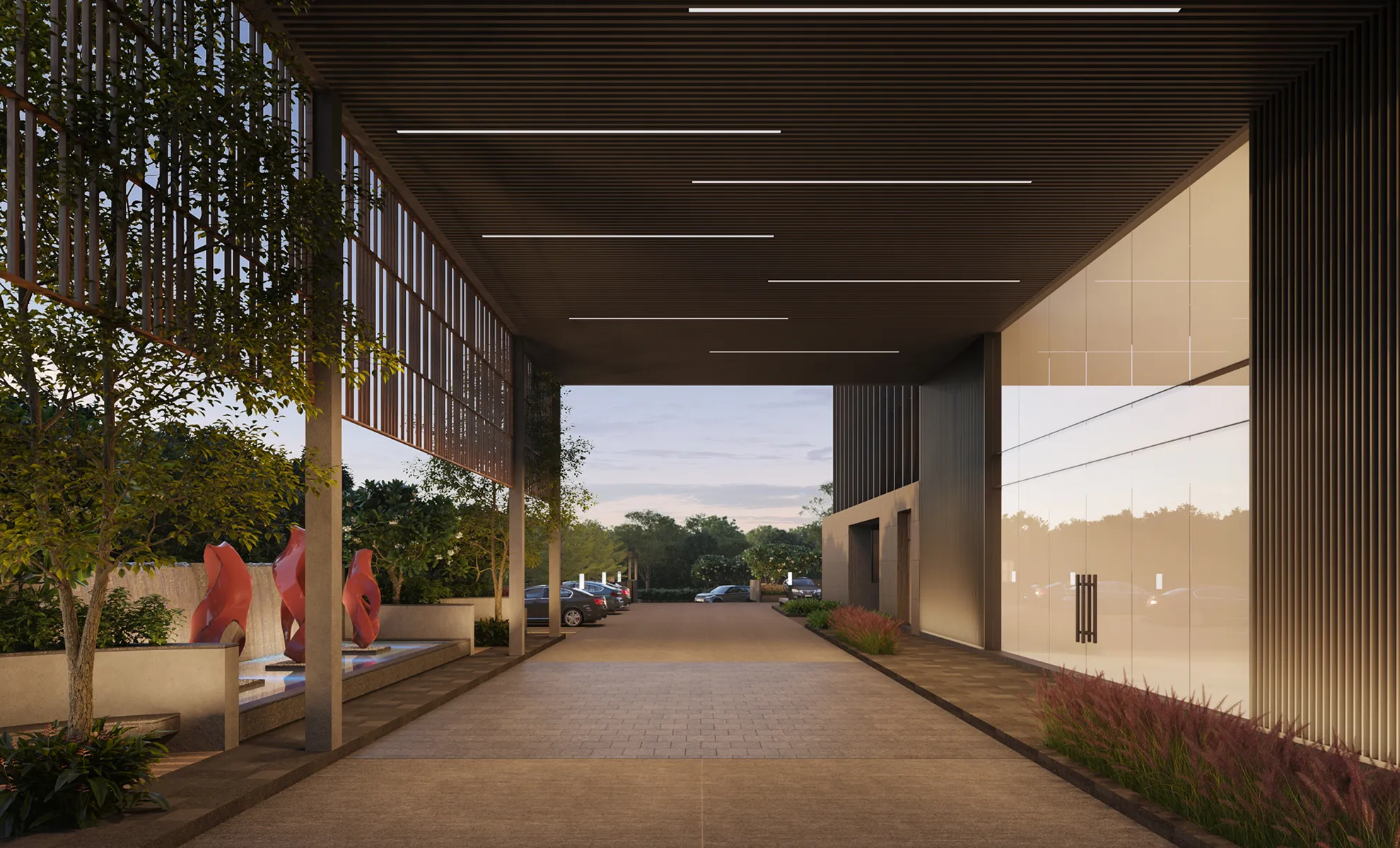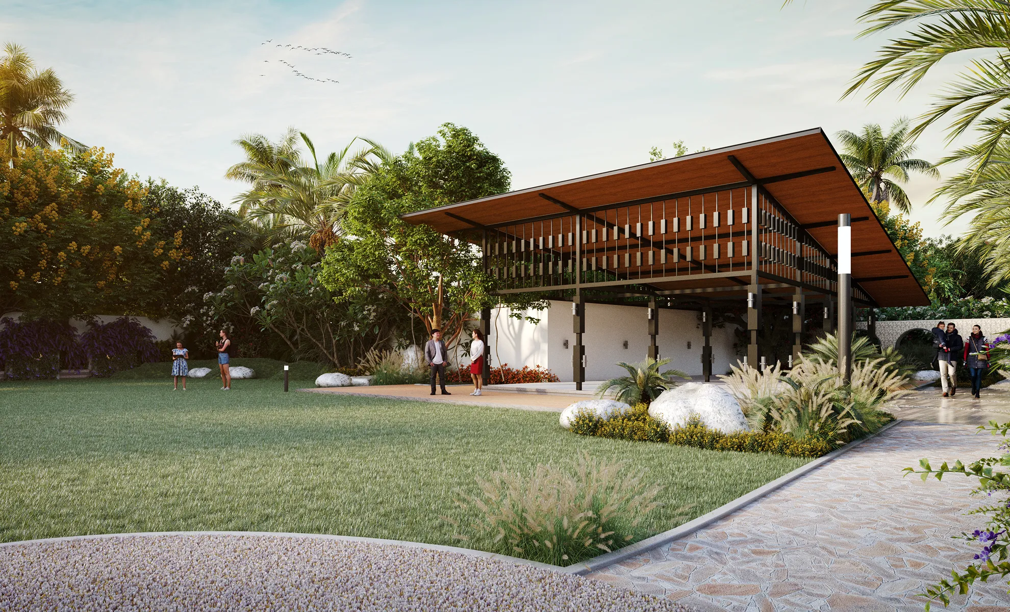 A thoughtfully planned space surrounded by serene greenery.